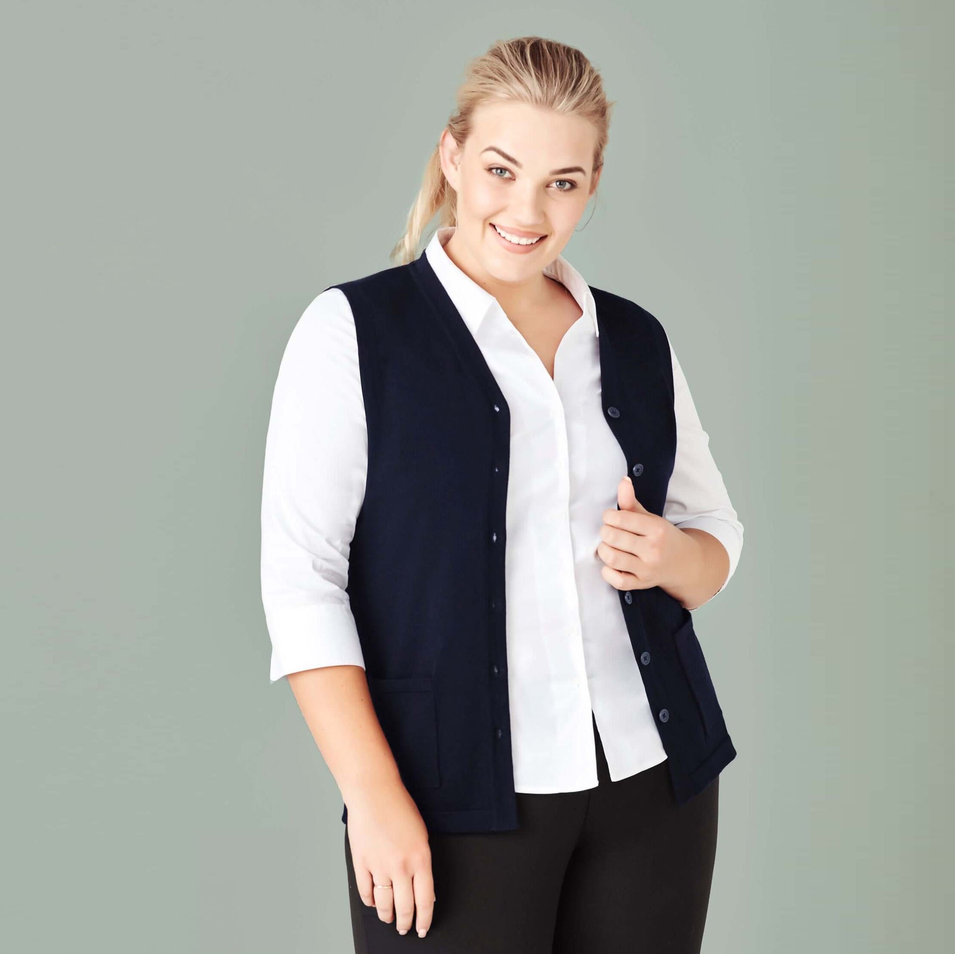CK961LV - Womens Fashion Biz Button Front Knit Vest