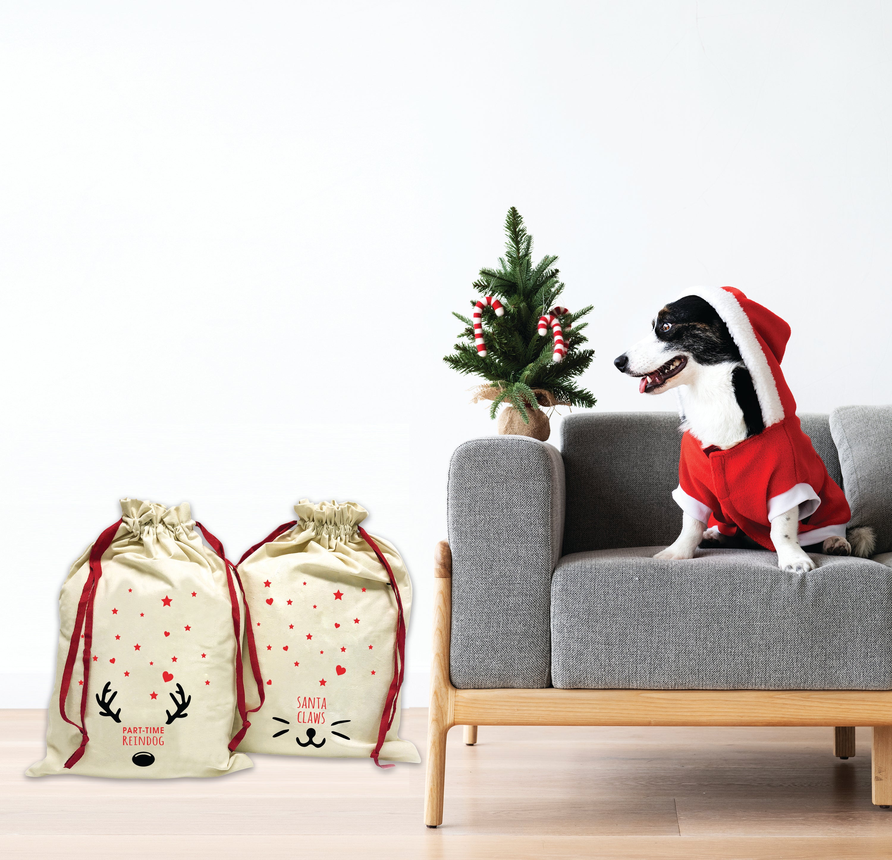 Meet our cute new Santa's Helper sacks designed especially for our four legged feline family members!