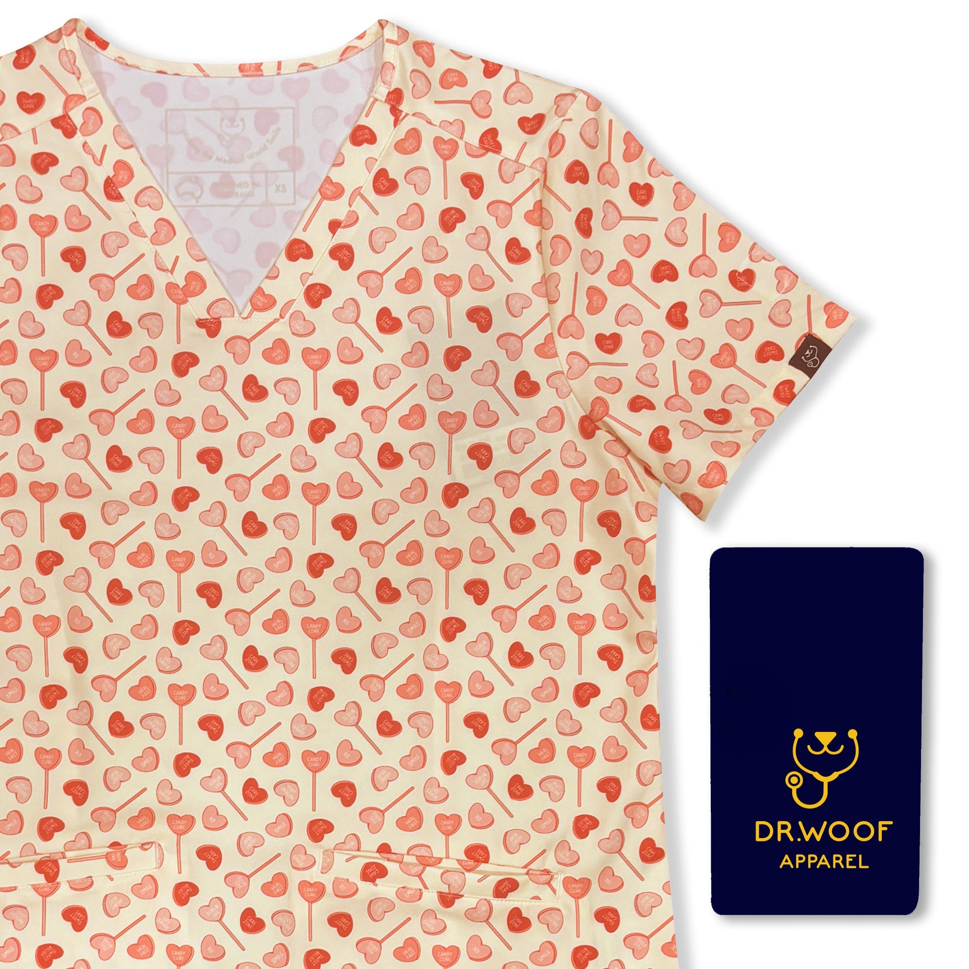 Dr Woof Women's Printed Scrub Top - Sweetheart