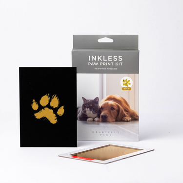 The mess-free, Inkless pawprint kit for pets offered by Heartfelt Paws provides a convenient and clean method to capture your pet's pawprint. This kit eliminates the need for traditional inks and ensures a hassle-free experience. By applying gentle pressure, your pet's paw is pressed onto the specialised Inkless pad and transferred to a paper card, leaving a clear and detailed impression without any messy residue.