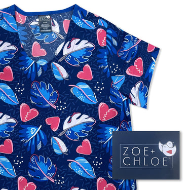 Our Zoe+Chloe V-Neck Tie-Back Scrub Top comes with a convenient shoulder badge loop, two on-seam pockets for your essentials, and encased grosgrain tie-back strings for a secure fit. The notched sleeves and side vents at the hem provide ease of movement, ensuring comfort during long shifts.
