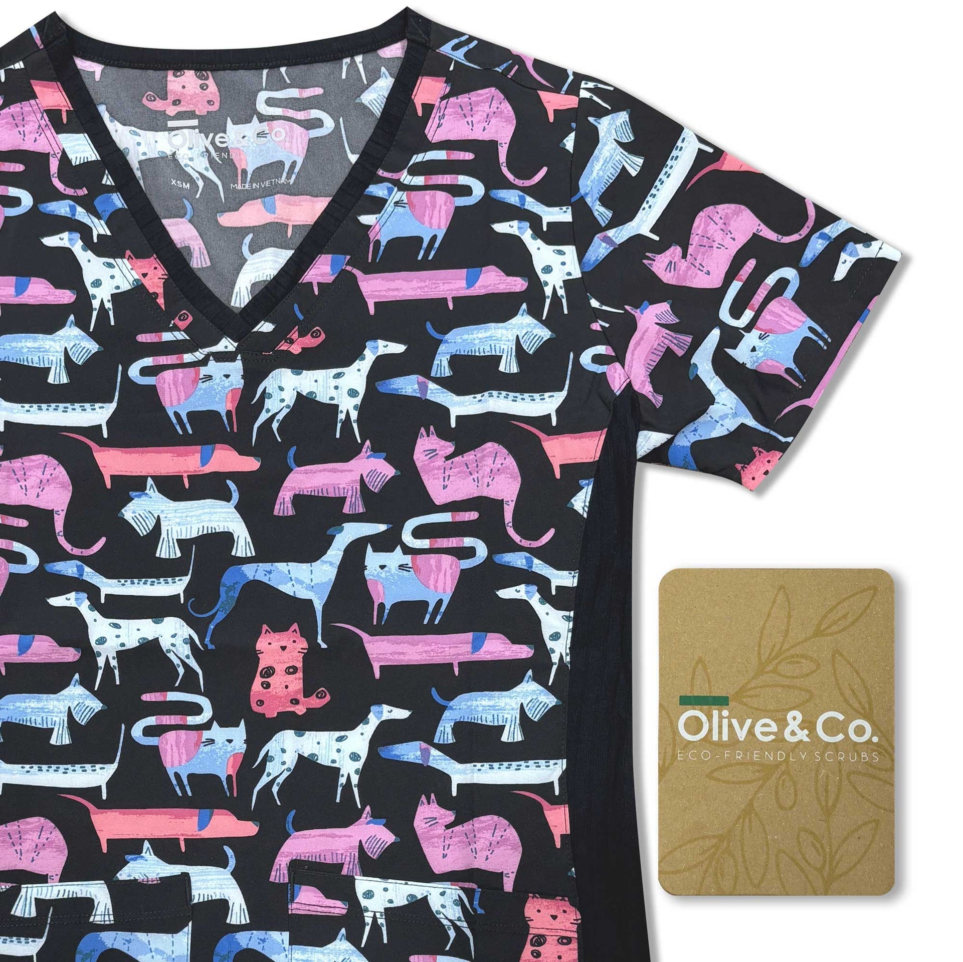 Dr Woof Women's Printed Scrub Top - Border Collies