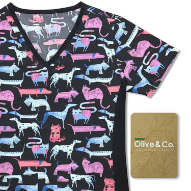 Womens Printed Scrub Top - Precious Pets