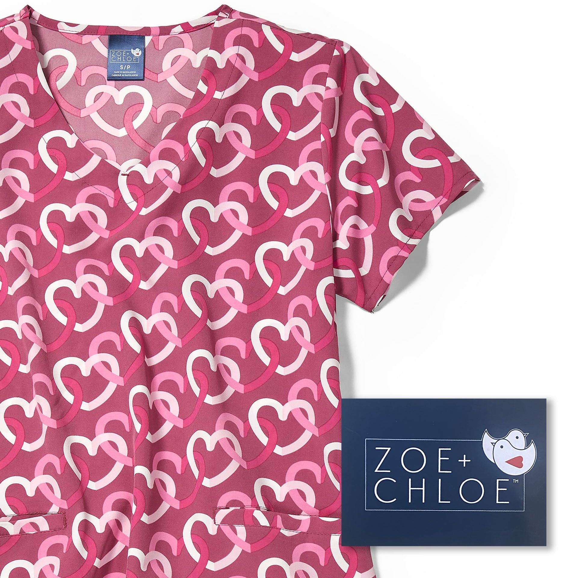 Zoe+Chloe Women’s V-Neck Border Print Top has a flattering curved v-neck that complements the neckline perfectly. This print scrub top sits comfortably on the body with a classic women’s fit that isn’t tight or unshapely. The two roomy welt pockets sit flush blending into the print like invisible pockets. Made with side vents for ease of movement, this polyester/spandex v-neck scrub top is comfortable, durable and a great option if you are wanting to add fashionable prints to your medical scrubs uniform.