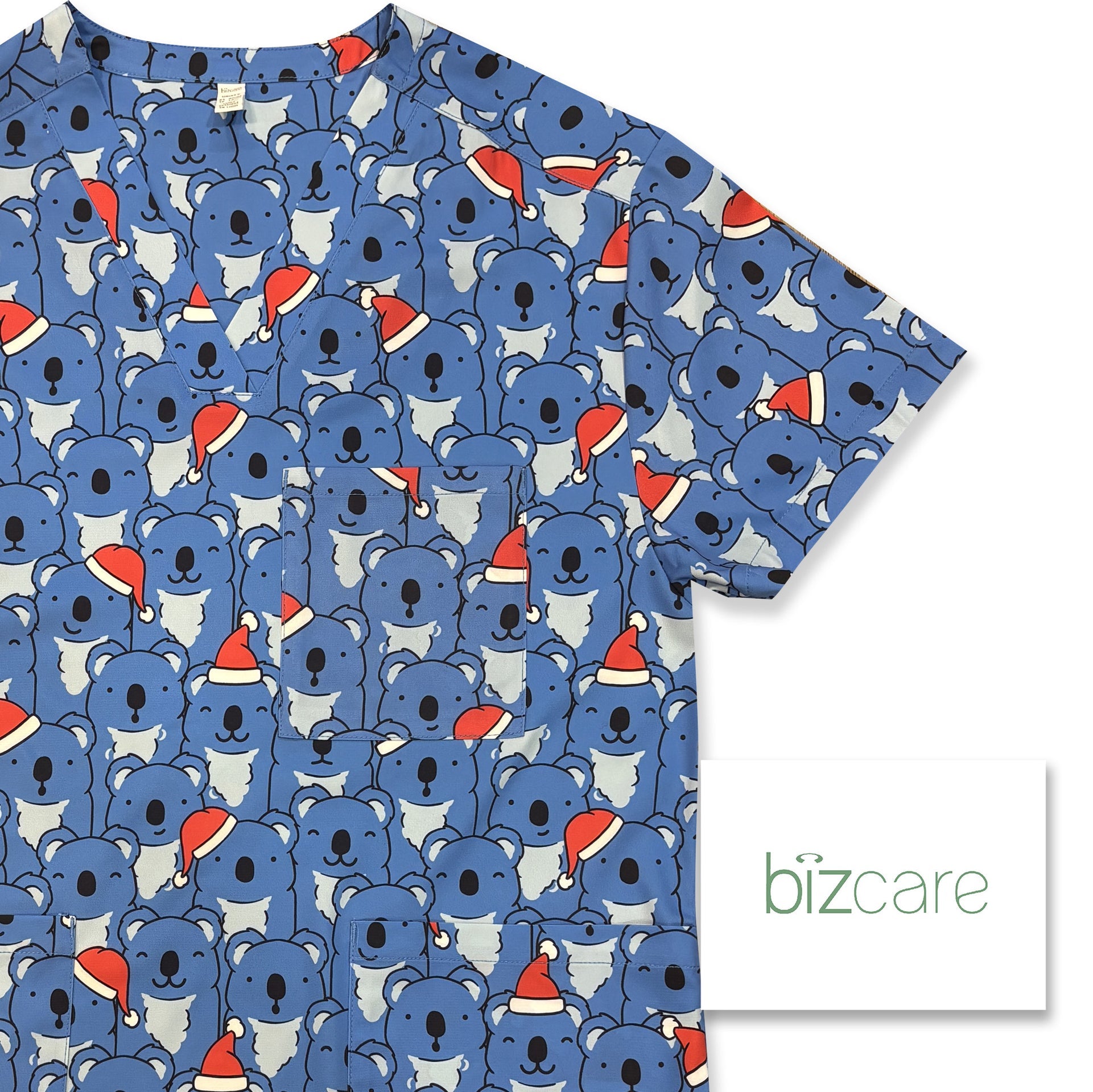 Celebrate the Aussie festive season in style with this Koala Print scrub top. Featuring native motifs on a vibrant teal base, this top is made for holiday shifts and beyond. Unisex fit, all-day comfort, and sustainable to boot - it's a win for your wardrobe and the planet.