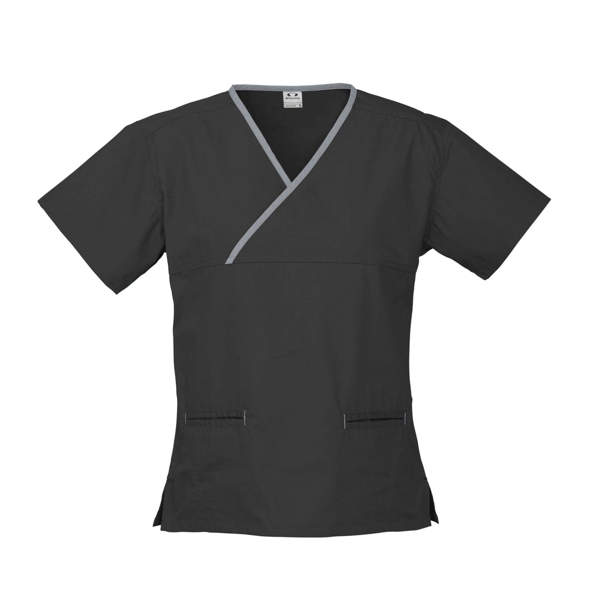 Contrast crossover style can create task or workplace identity and adds a point of difference. A natural stretch in the fabric allows for ease of movement and resists creasing.