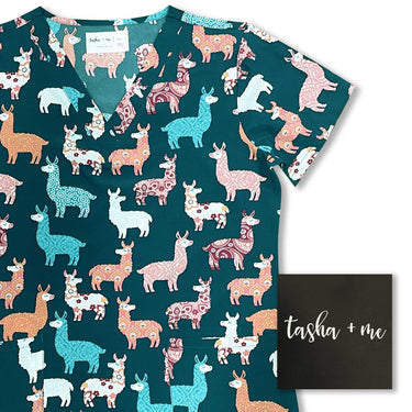 Womens Printed Scrub Top - Lovely Llamas