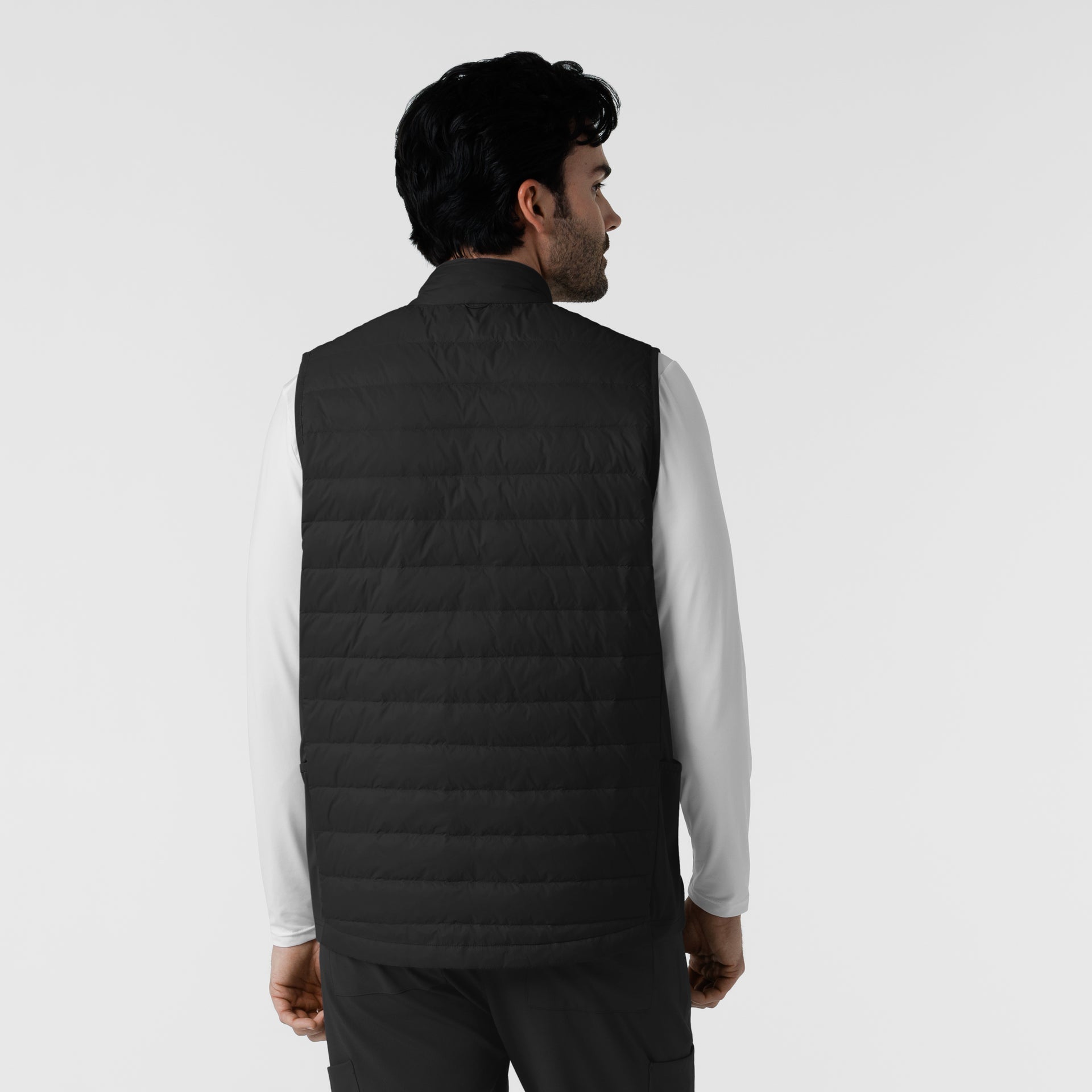 Stay cozy and stylish with this men's quilted scrub vest, perfect for layering over a long sleeve tee when the chill hits or the nurse's station feels like a freezer. The puffer-style quilted design adds comfort while Flex-n-Reach panels give you the stretch you need to move freely as you lift, lean, and reach throughout your shift. Keep your badge in full view with convenient loops at the shoulder and back neck for easy access.