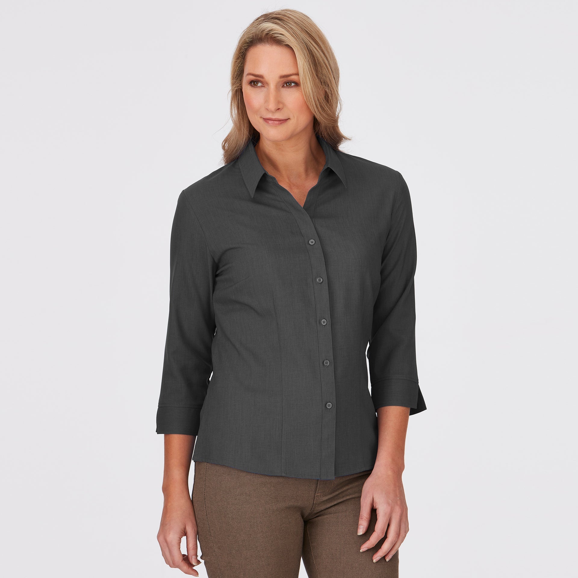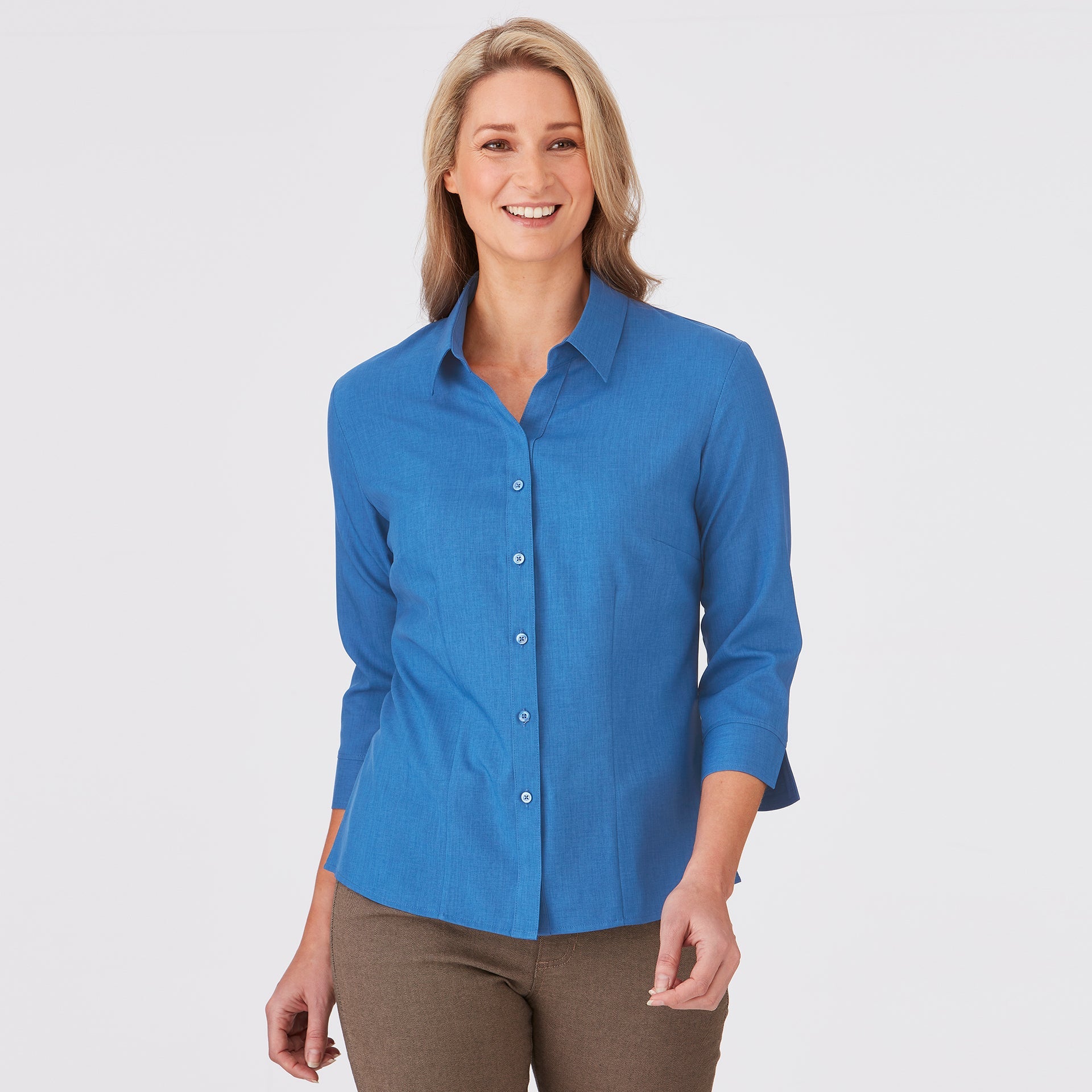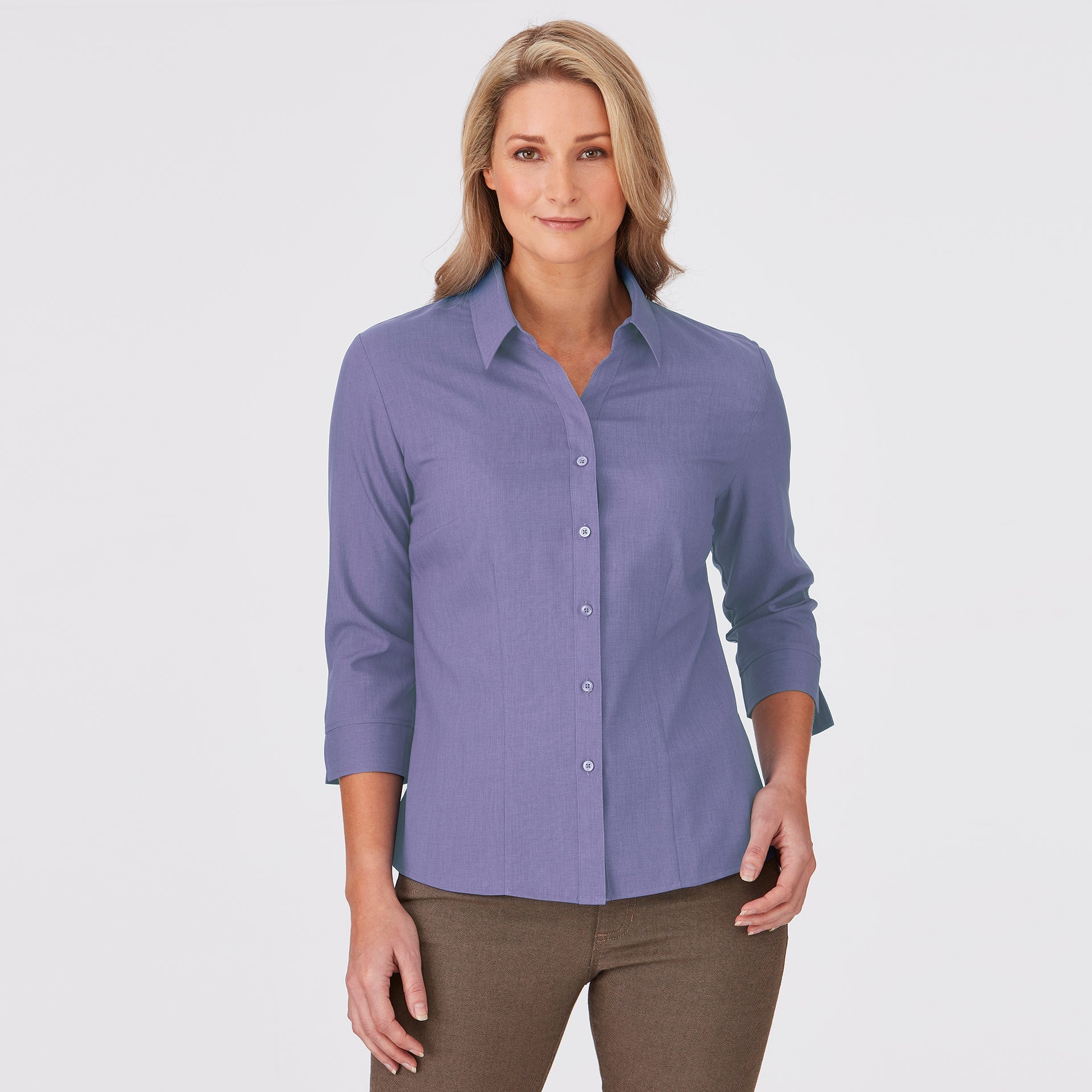 This style is shaped through the body with room to move. It is neither too slim nor too loose and can be worn tucked or untucked. This fit is suitable for most body types.