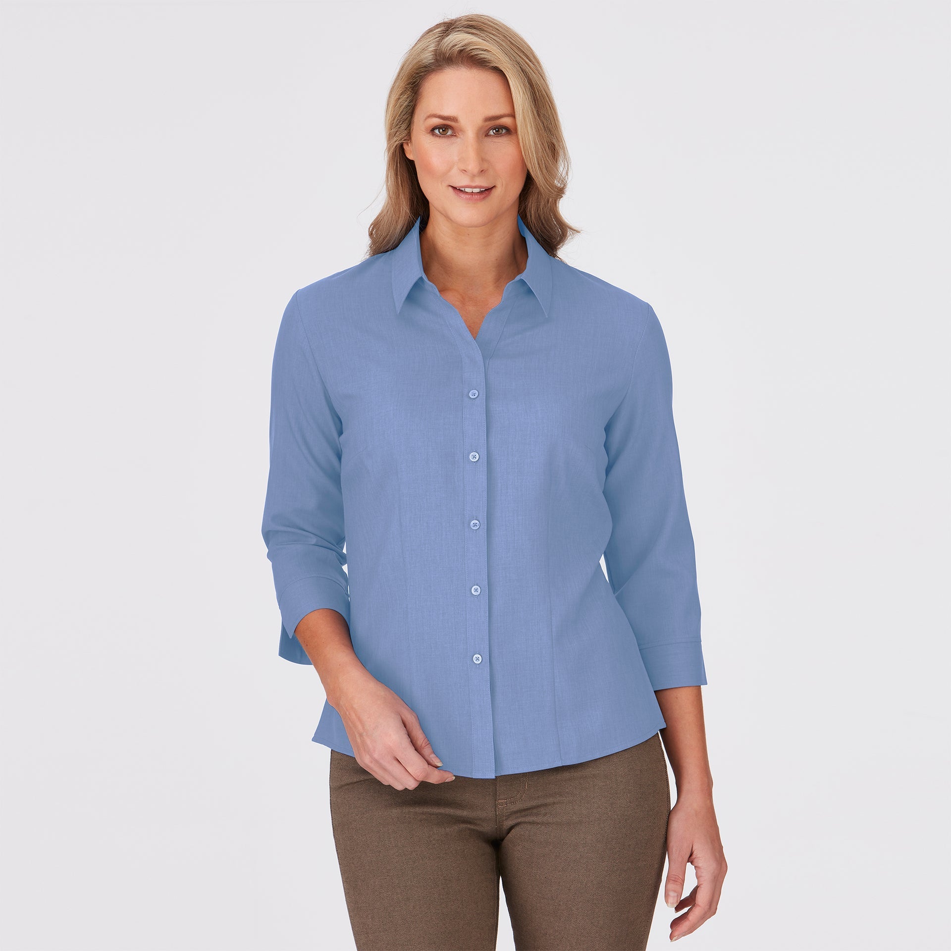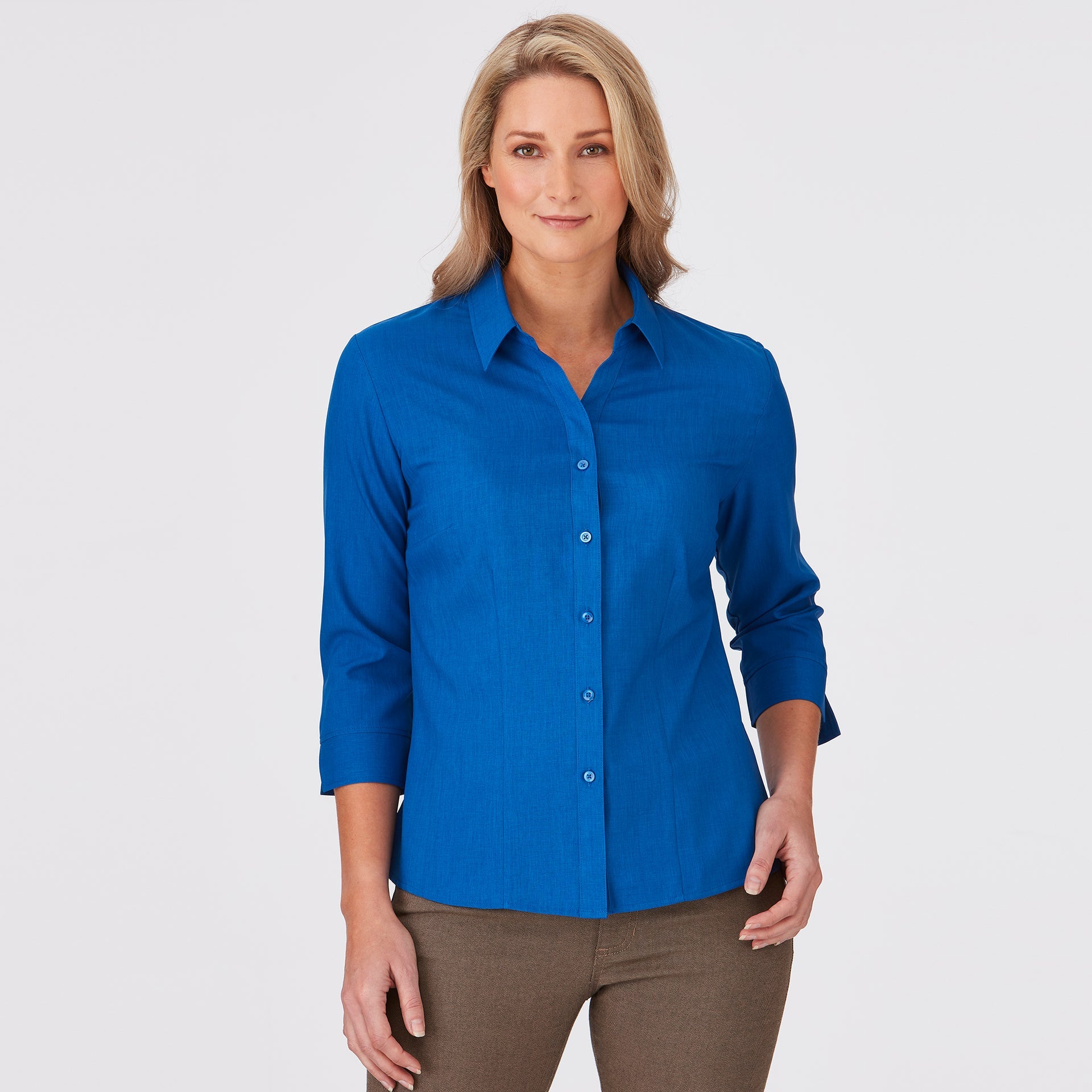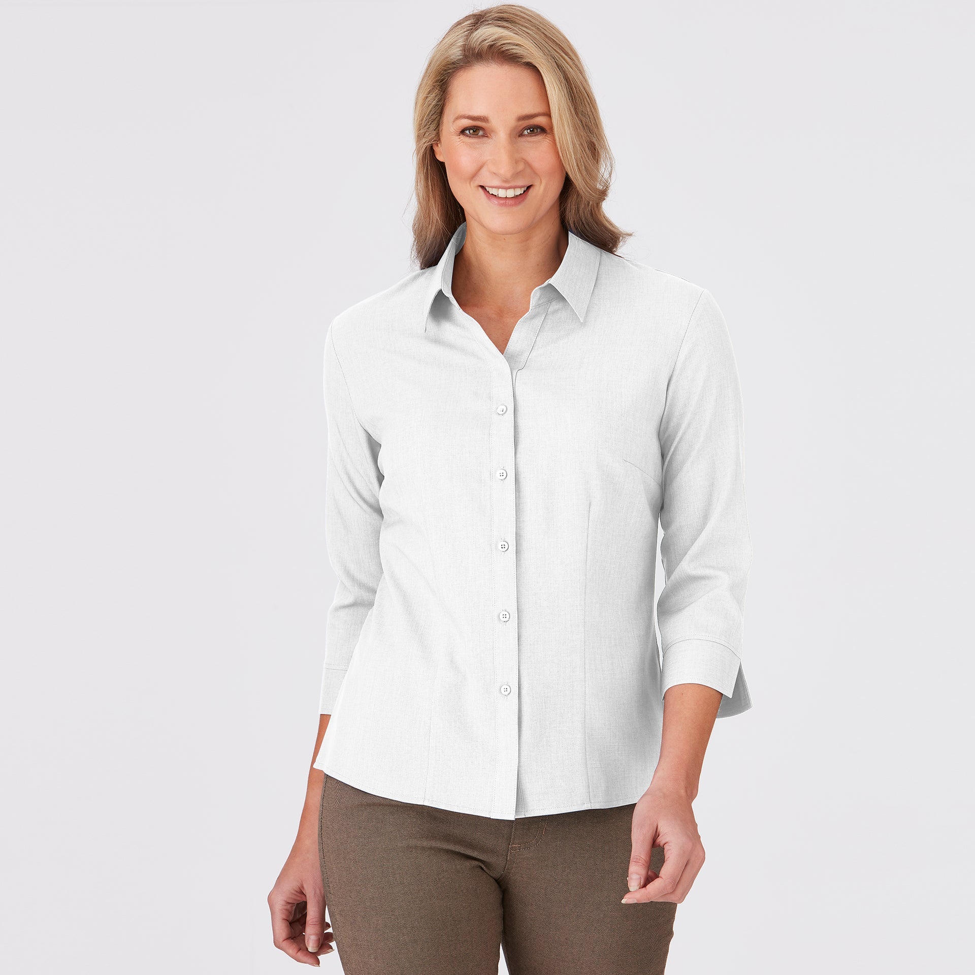 This style is shaped through the body with room to move. It is neither too slim nor too loose and can be worn tucked or untucked. This fit is suitable for most body types.