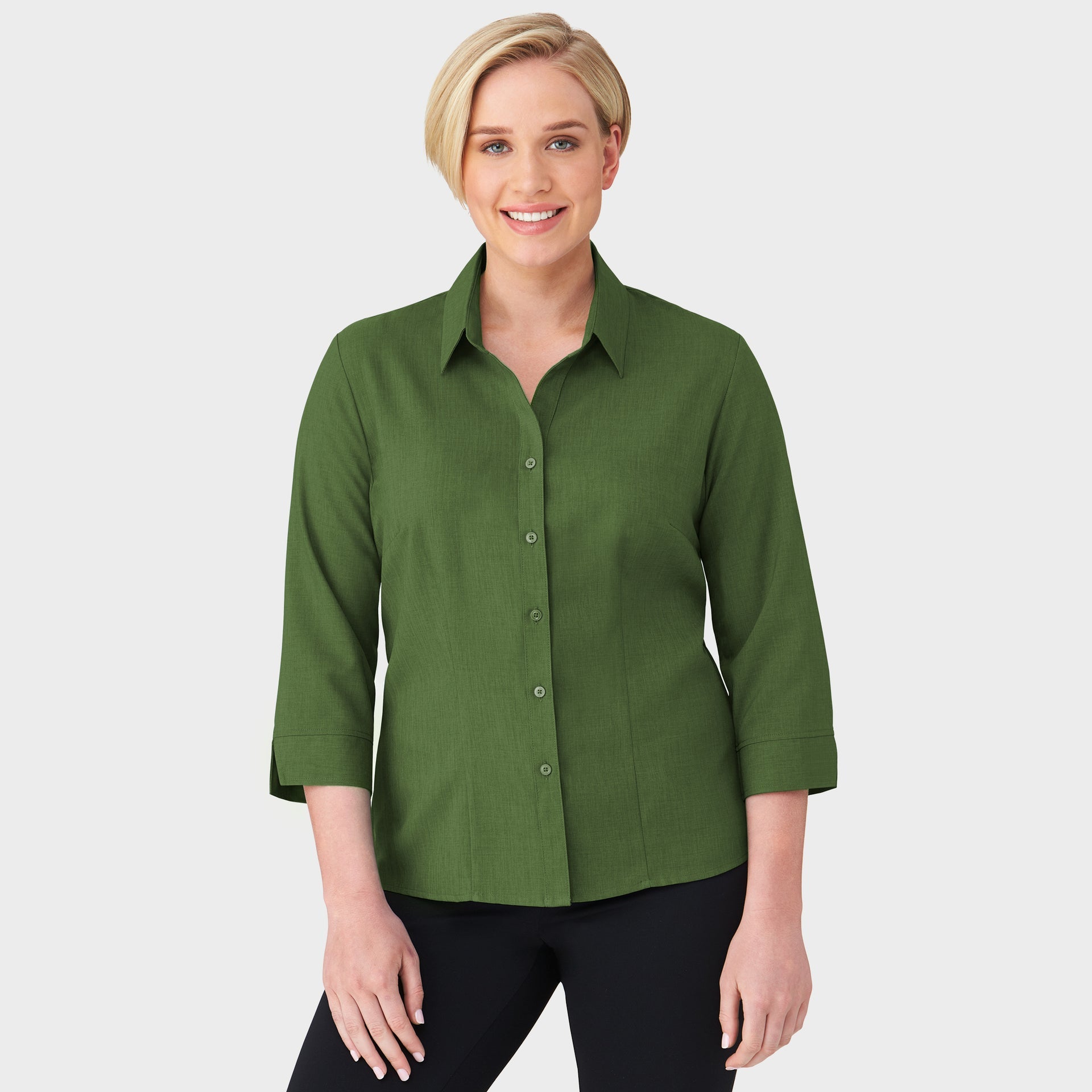 - Tailored open neck collar