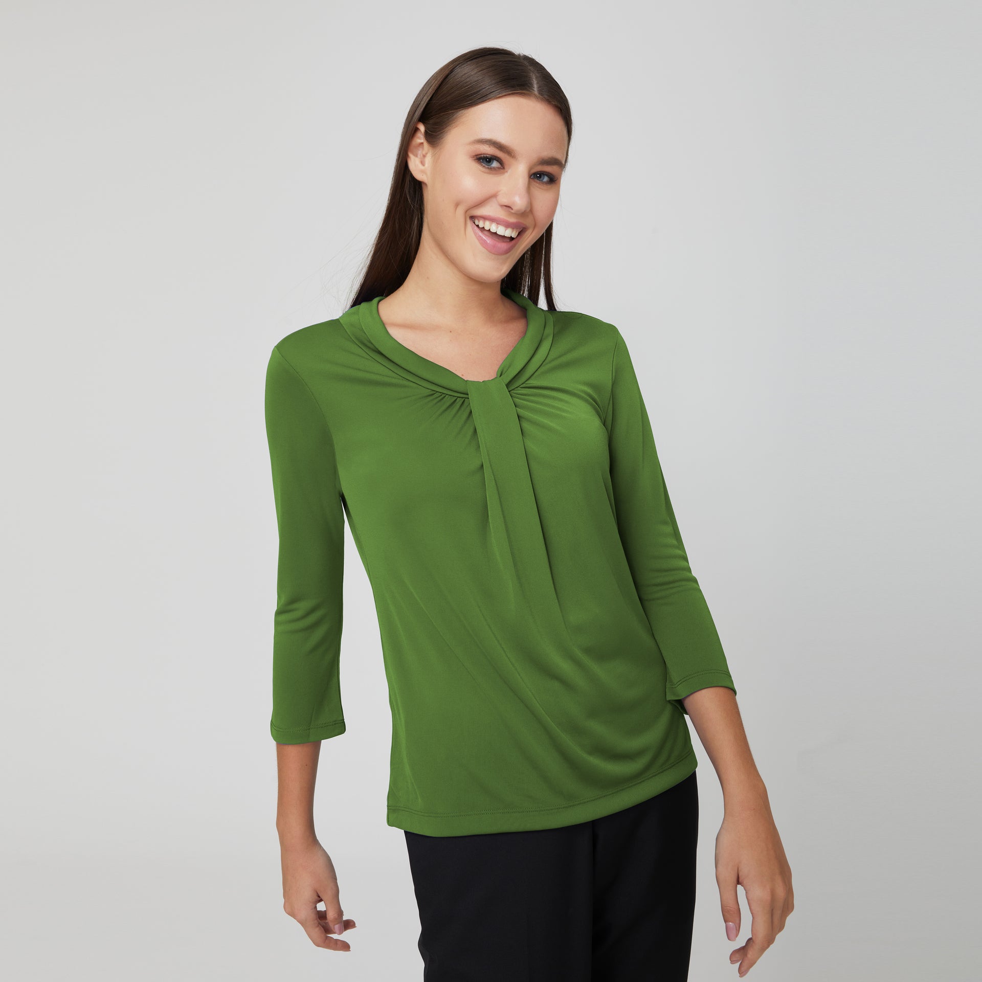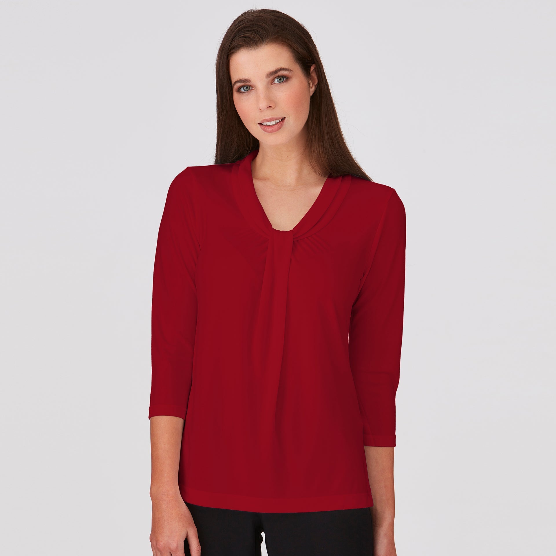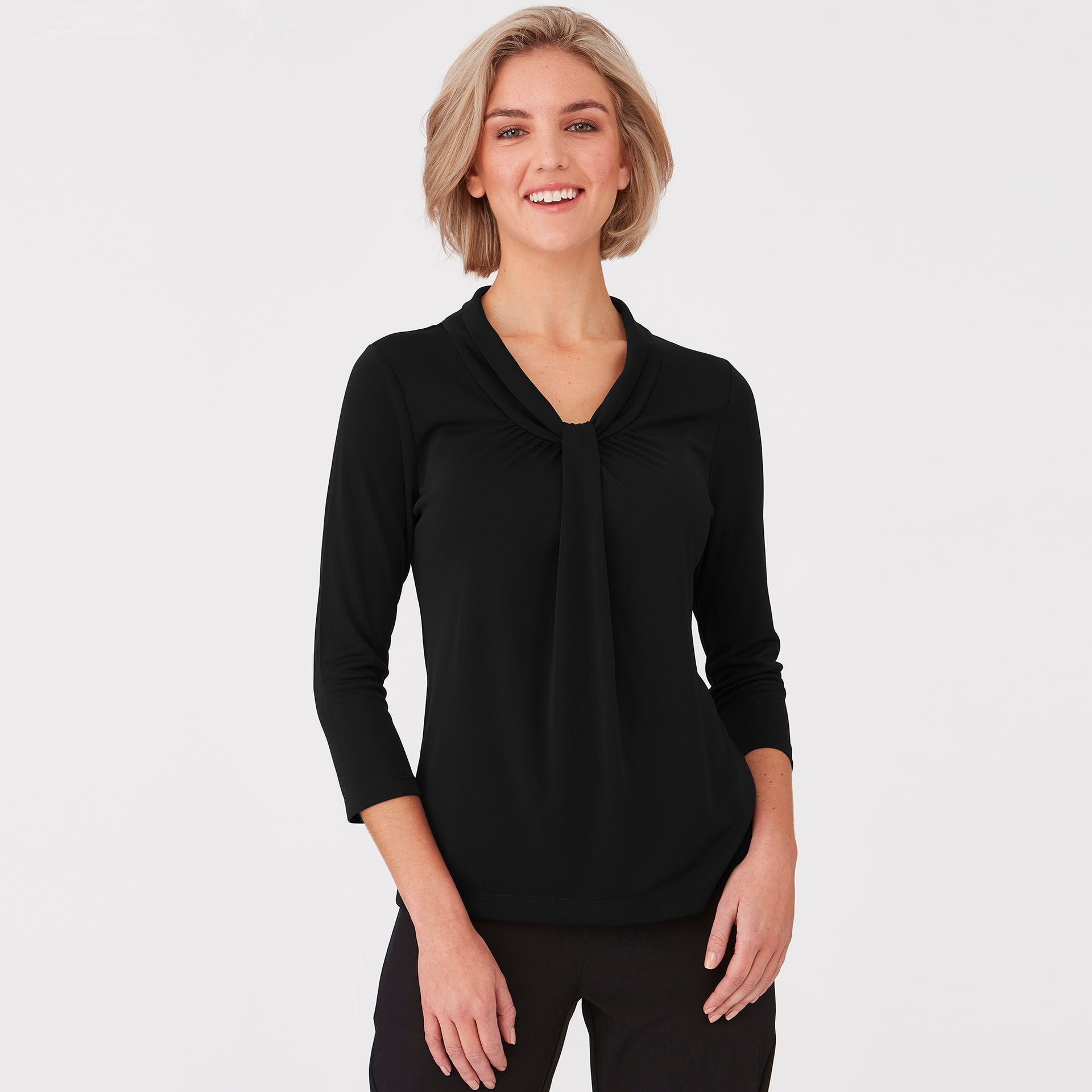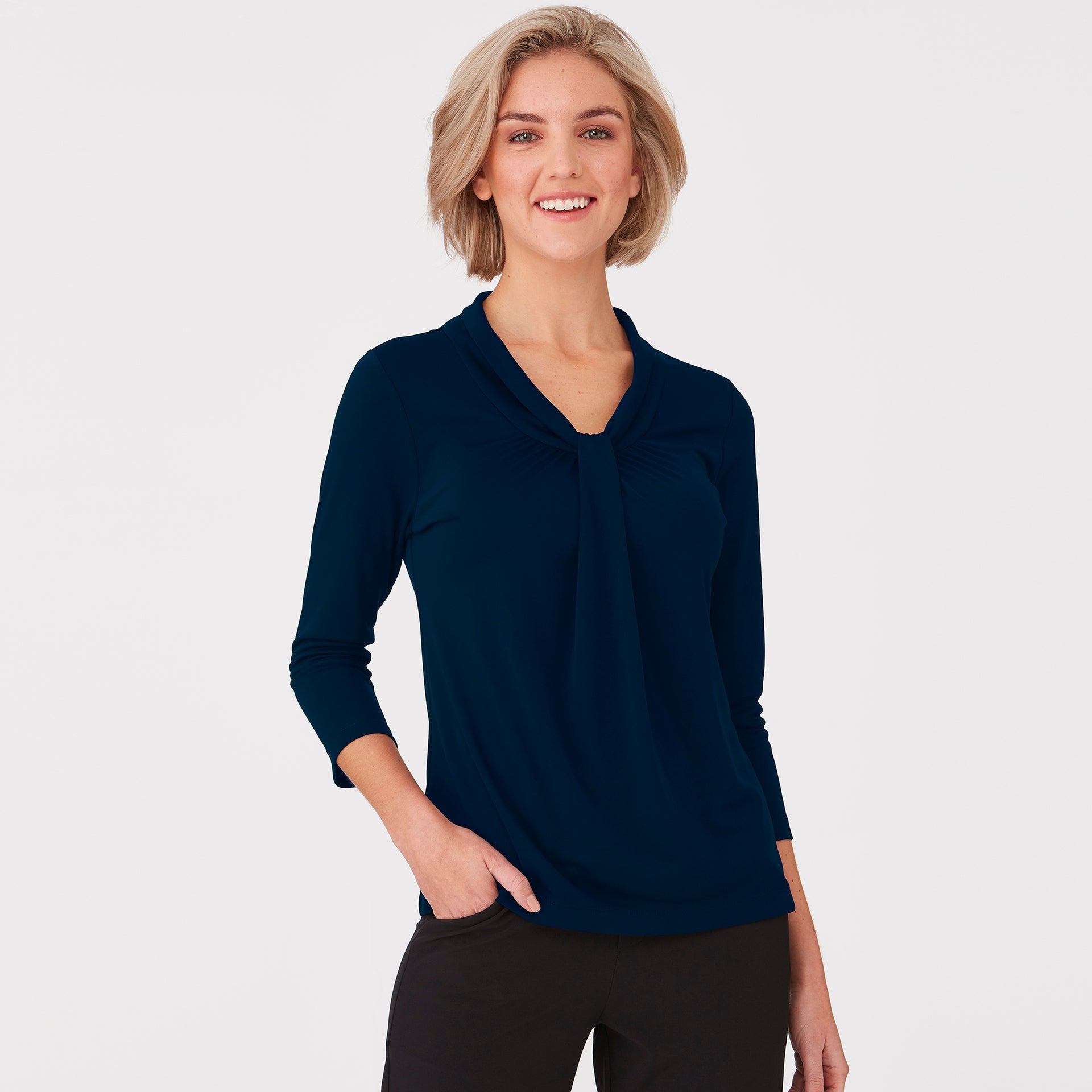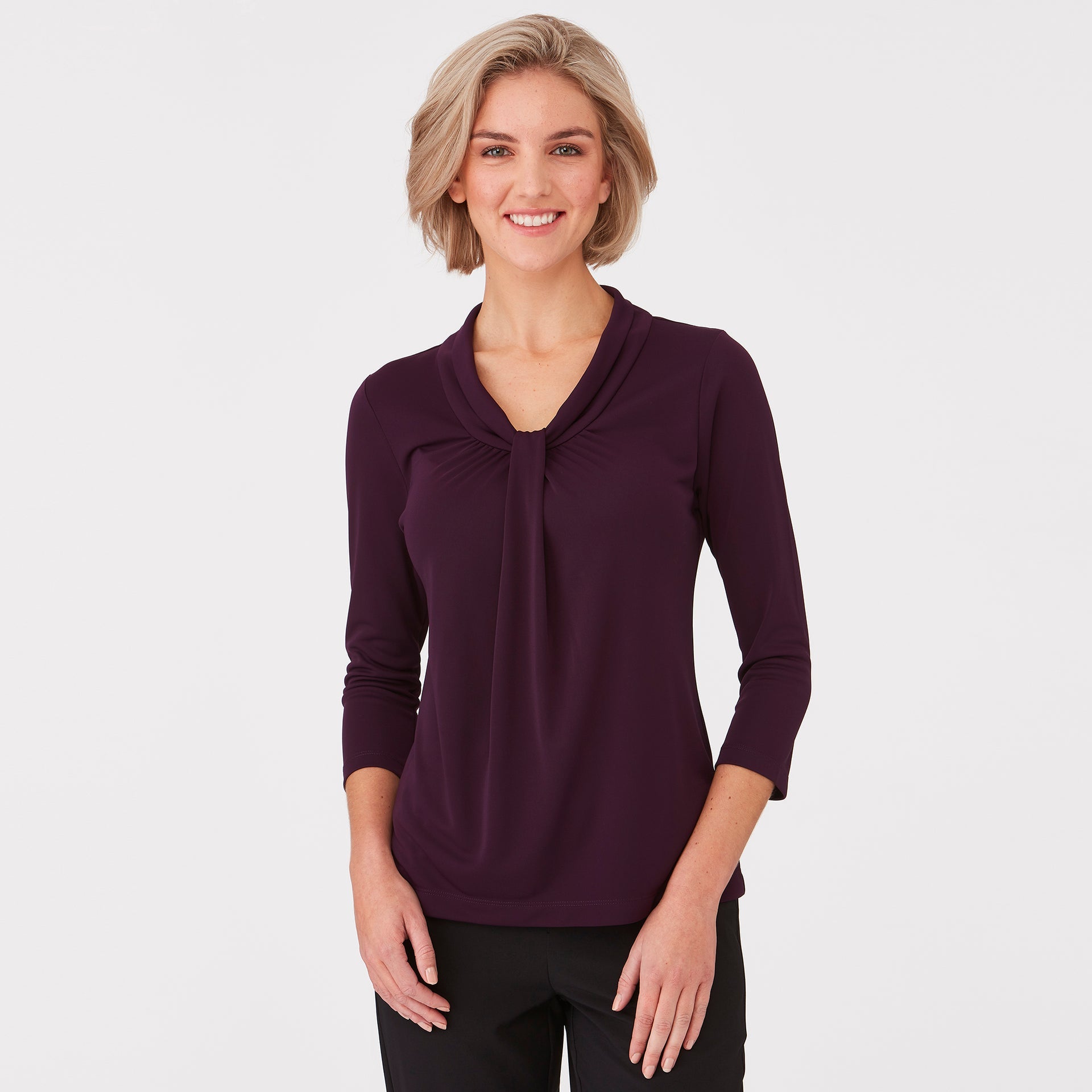 Exceptionally soft and cool to wear, Pippa Knit offers the ultimate in comfort. The unique and versatile draped neckline with gathered front detail creates a feminine look for the corporate environment. The stretch Matte Jersey is easy care and flatters all body shapes and sizes, making it the centrepiece of your working wardrobe.