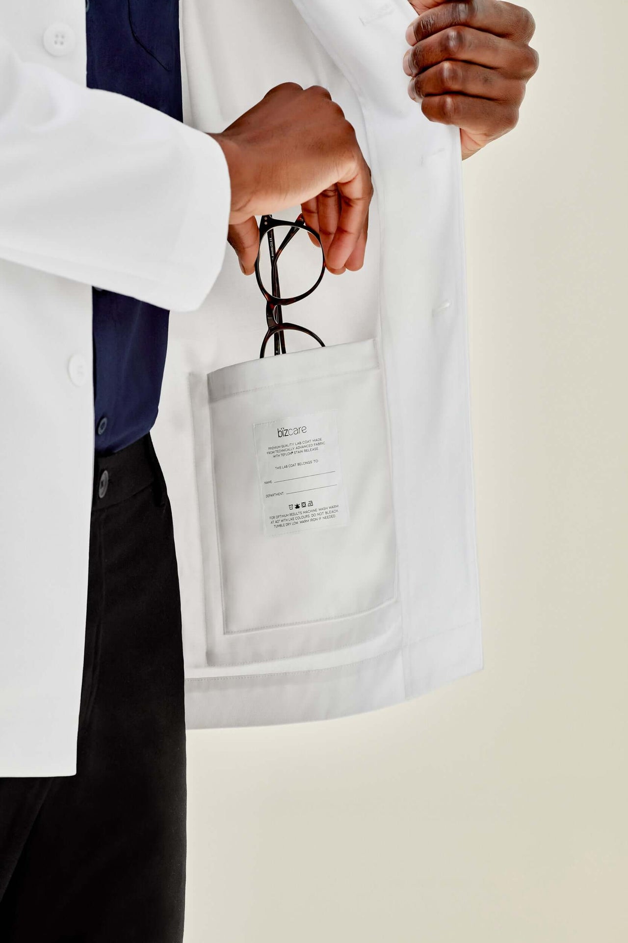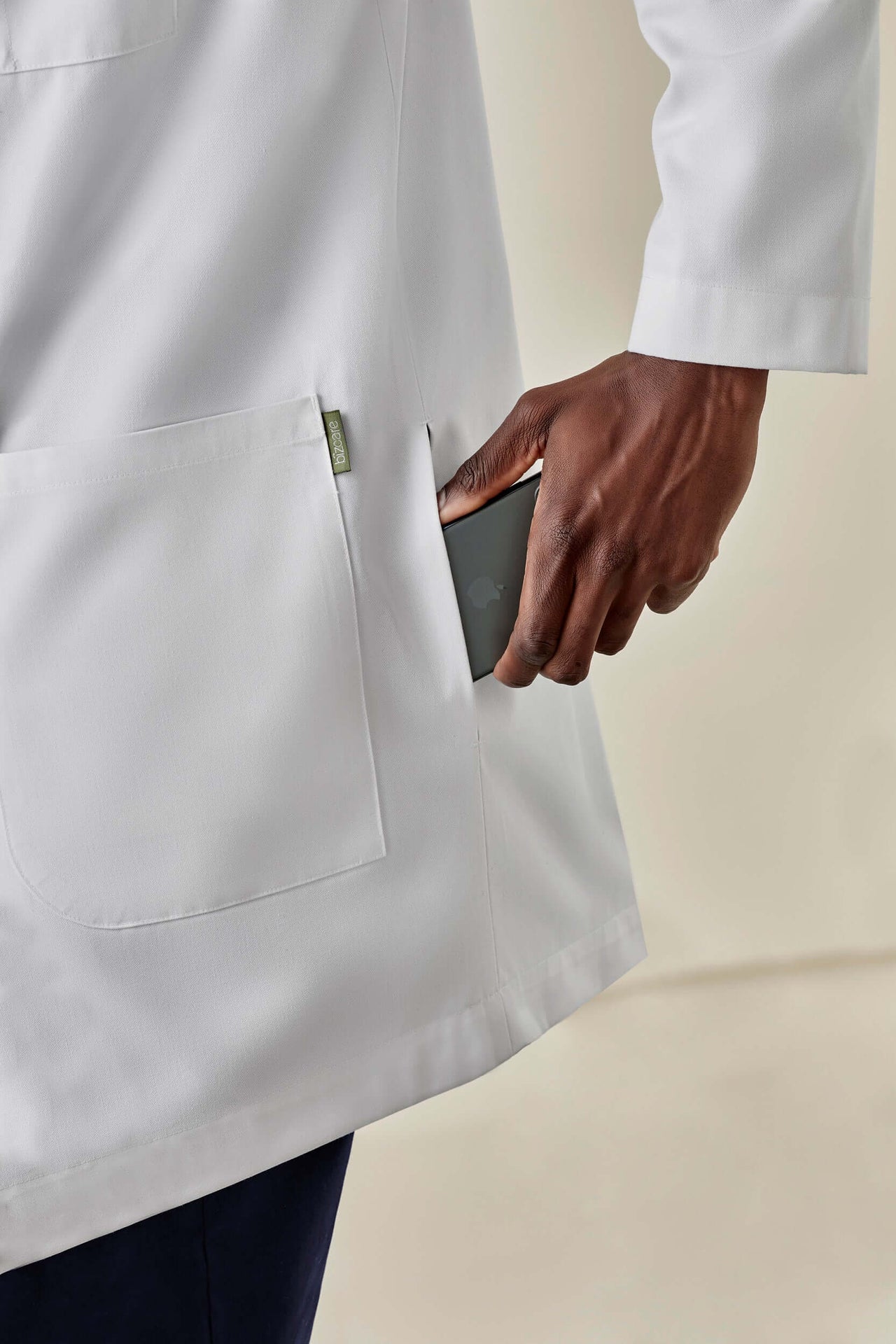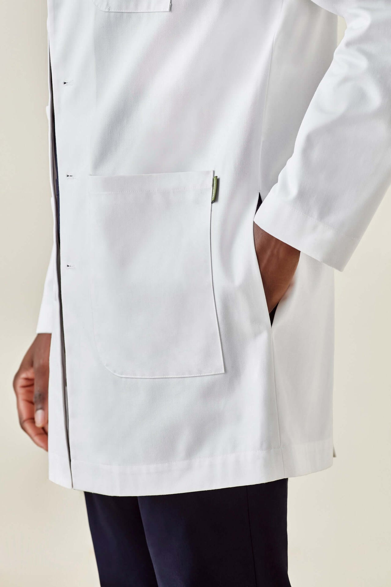 Functional and comfortable lab coat with a modern tailored fit, soft and luxurious fabric treated with Teflon® Stain Release