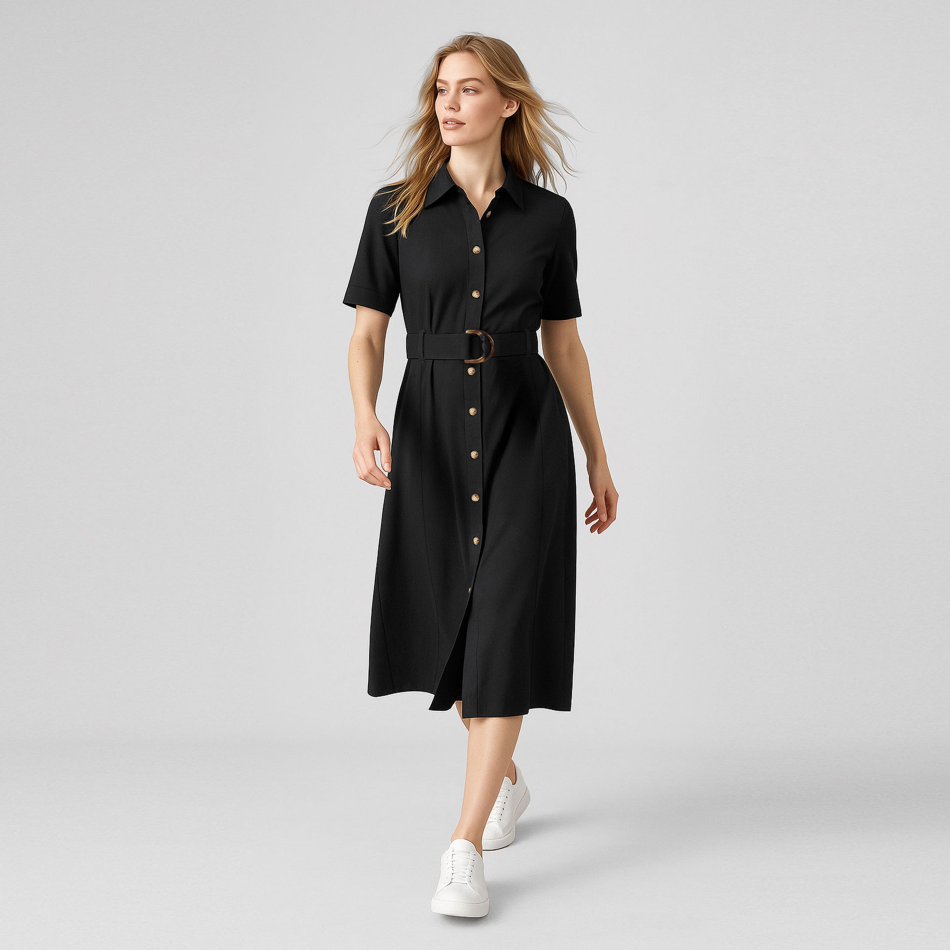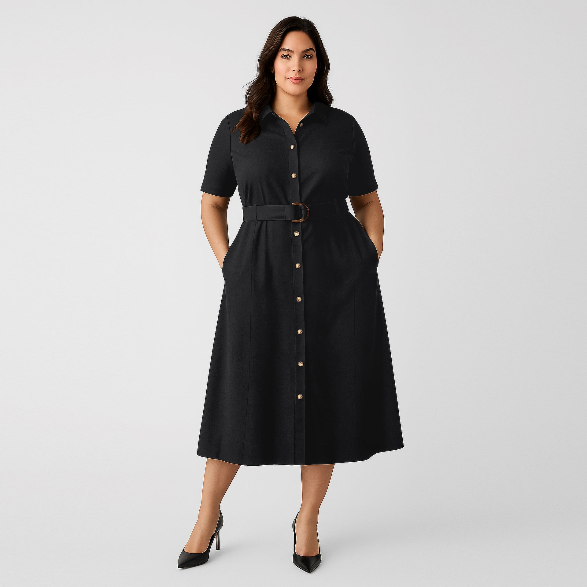 Elevate your wardrobe with the Adele Midi Dress for a refreshing, stylish look for the office. Designed to sit mid-calf, for a modern look. Style with long boots, heels or flats.